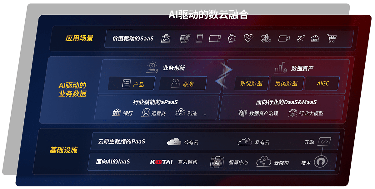 以尊龙鲲泰全国产化计算产品帮助金融行业客户构筑数字底座;以丰富的AI和数云产品及方案,,,,保障数据安全,,挖掘数据价值,,,,提升服务品质